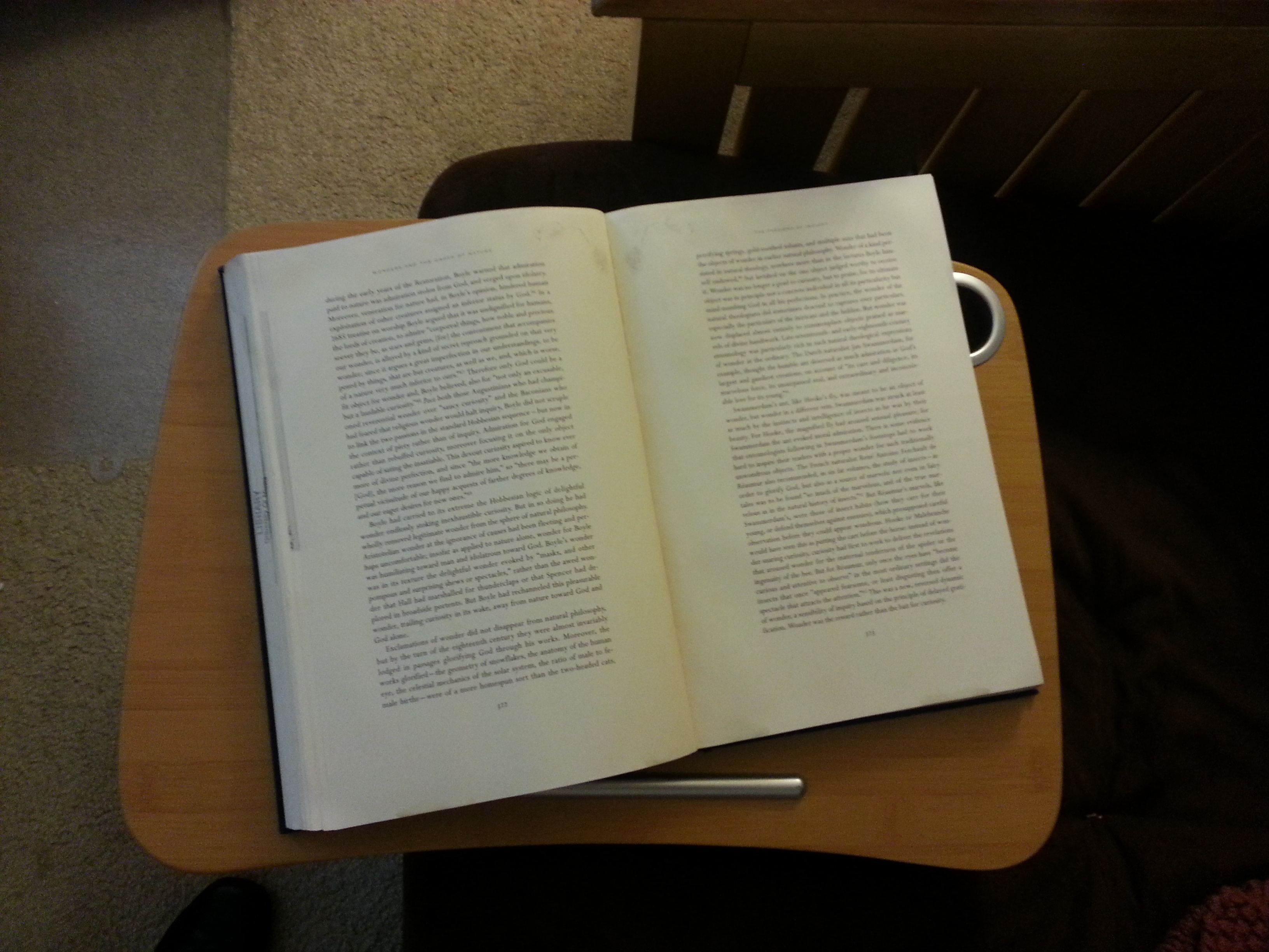 This book is a must-read for a seminar for this week. I left this placed on my lap table to demonstrate its dimensions. I am all for creative printing, but if I need a literal lectern to read the book, that creativity may need to be rethought.