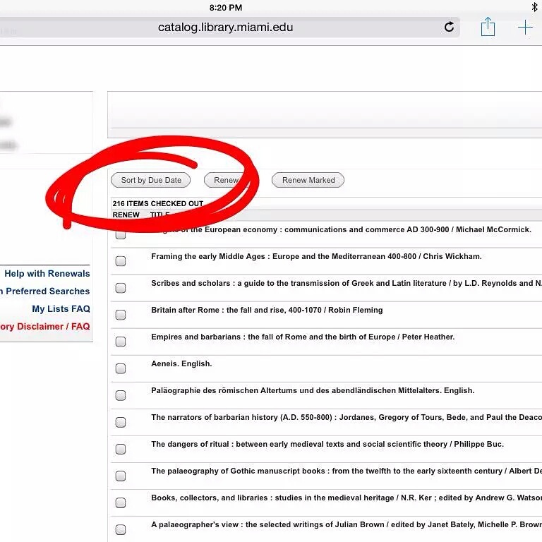 Everyone who has had to read very specific books in some kind of a recommended order for a deadline likely knows what it’s like to realize that someone has something out of the library you need, and that someone, regardless of a good deal of library prodding, refuses to bring the book back. That phenomenon dawned on me this past week, looking at my “requested” items list on my University library account, realizing that at least three books I requested back in March had not yet been returned. Rather than deal with a more widespread version of this after the semester starts up again, I decided to take the plunge and go to the library to pick up all of the remaining books on all of my comprehensive exam lists that I didn’t have and had not yet read.