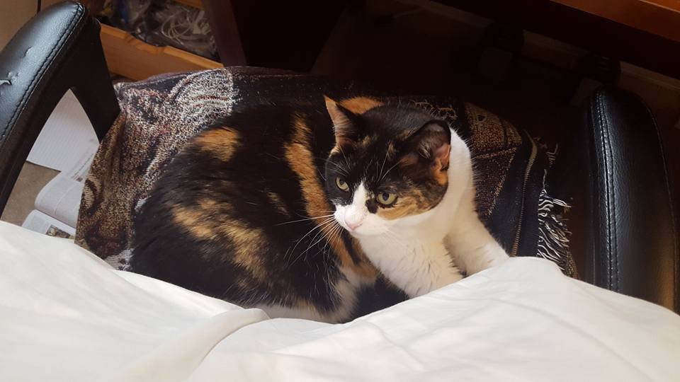 Then, I found different cats, all disturbed from their naps, whenever I pulled the desk chair out from under the desk: